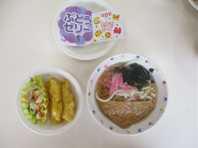 けんちんうどん さつまいもの甘煮 卵サラダ