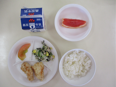 ごはん 鶏肉のから揚げ キャベツサラダ