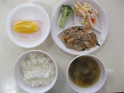納豆、ゆでた野菜(園ではキュウリ、にんじん、キャベツ、コーンが入っています)、かまぼこをマヨネーズで和えたサラダです。おうちでも作ってみてください~