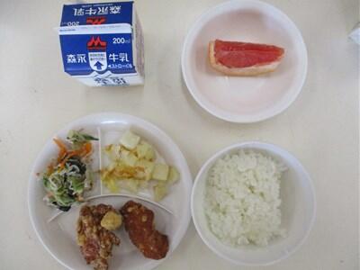 揚げ餃子の甘酢あんかけ グレープフルーツ 豚汁