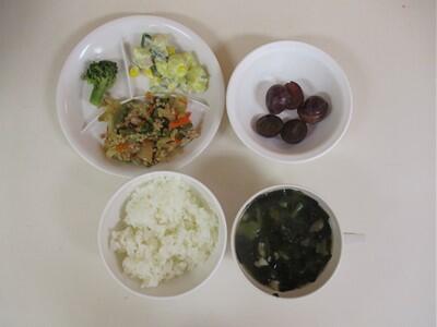 さつま芋の甘煮 フルーツ(グレープフルーツルビー) みそ汁