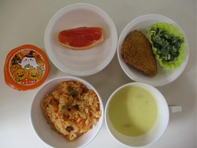 ケチャップライス かぼちゃコロッケ ほうれん草のサラダ