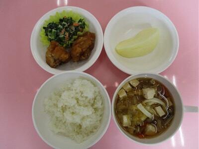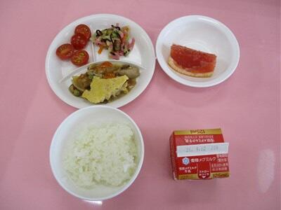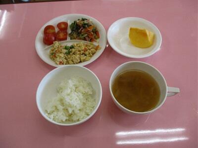 ミニトマト なめ茸和え メロン かんぴょうの味噌汁