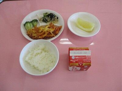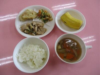 ごはん 豚肉のしょうが炒め さつまいもの甘煮
