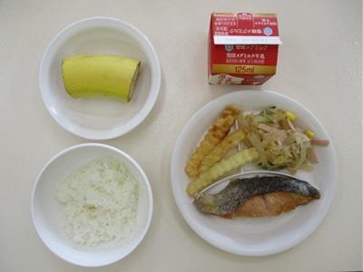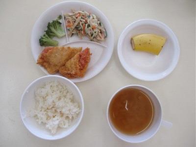 ごはん 鮭フライ かぼちゃのいとこ煮