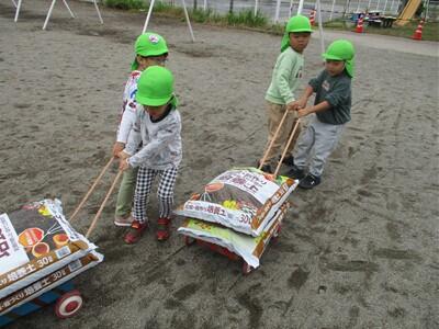 おおきなかぶの絵本を読んでいたこともあり、「うんとこしょ!どっこいしょ!」と、かけ声をかけながら力を合わせて引っ張りました