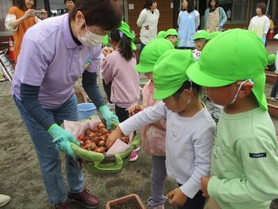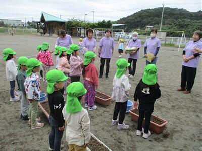 10月21日に、那珂川町更生保護女性会の方が来園し、うさぎ組の園児と