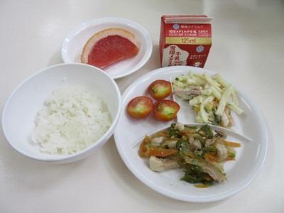 きゅうりの酢の物 グレープフルーツ 牛乳
