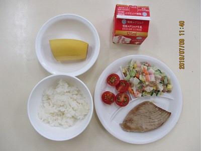 ごはん 鮭のフライ 胡麻和え ミニトマト