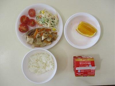 ごはん 鶏肉の甘辛揚げ ミニトマト