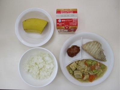 高野豆腐の卵とじ バナナ 牛乳