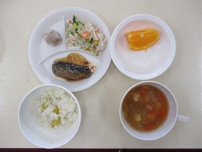 さつまいもごはん いわしのごまみそ煮 焼売