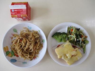 焼きそば スパニッシュオムレツ ブロッコリー