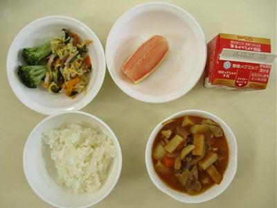 かぼちゃレーズン カニ風味サラダ 牛乳