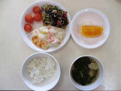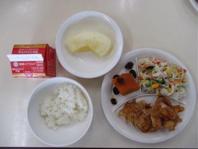 ごはん 鶏肉のコーンフレーク焼き りんご