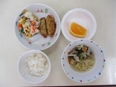 ごはん 揚げ餃子の甘酢あんかけ オレンジ