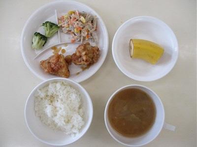 インディアンサラダ バナナ わかめスープ