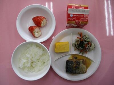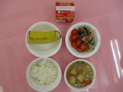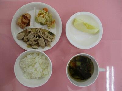 蒸し鶏と野菜の和え物 りんご 牛乳