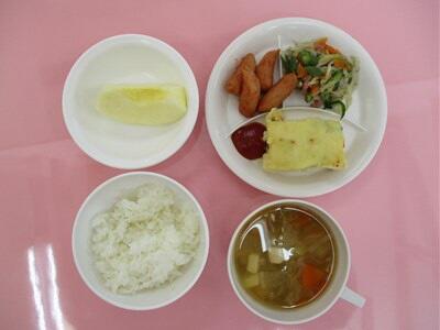 ごはん 揚げ餃子の甘酢あんかけ かぼちゃサラダ