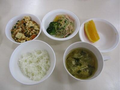 ごはん マーボー豆腐 バンサンスー ブロッコリー オレンジ .