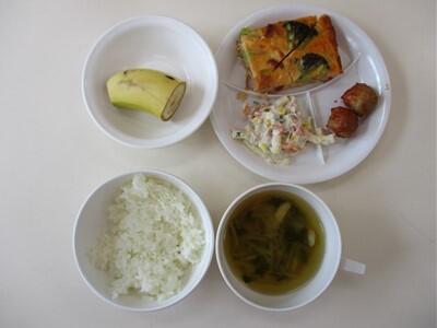 ごはん 野菜たっぷりキッシュ ミートボール マカロニサラダ