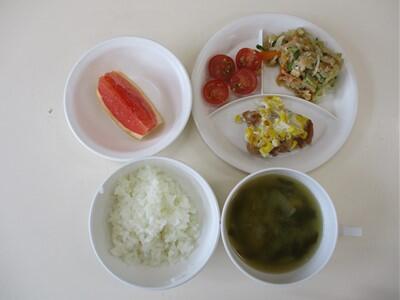 ごはん 千種焼き もやしの和え物 ミニトマト