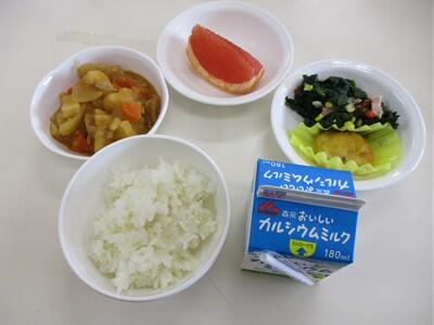 ごはん インド煮 ほうれん草サラダ ナゲット
