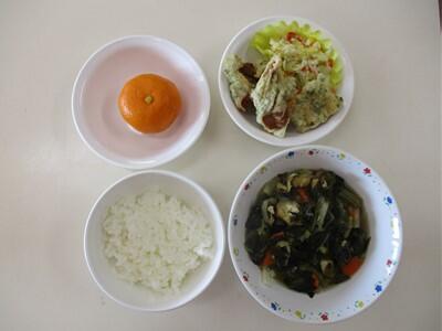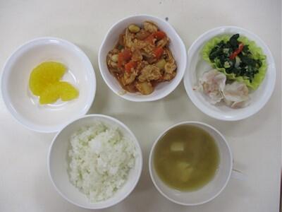 ごはん 鶏肉のマーマレード焼き 五目豆