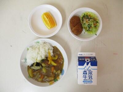 ごはん 夏野菜のカレー メンチカツ ツナ和え