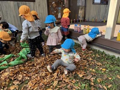 秋が深まり、どんぐりやきれいな落ち葉などの「自然の落とし物」がたくさんあり、子ども達を楽しませてくれます