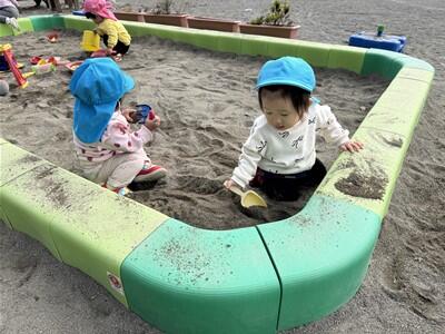 砂だらけになりながら、砂遊びを楽しんでいます☆