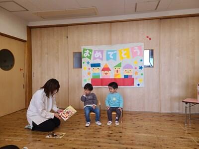 園長先生からも3歳のお祝いの言葉とともにプレゼントももらいました