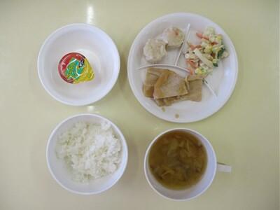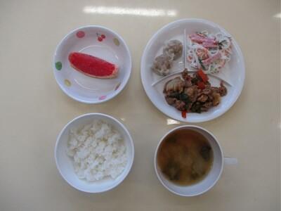 ・ごはん ・ホイコーロー ・しゅうまい ・シルバーサラダ ・グレープフルーツ ・みそ汁