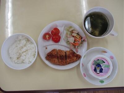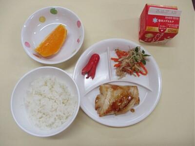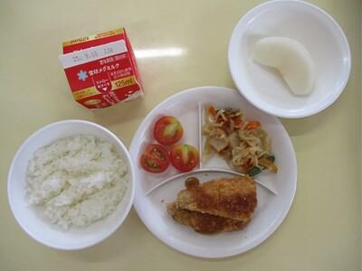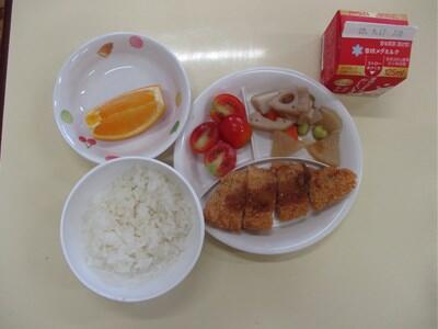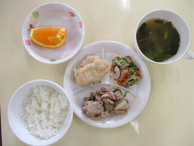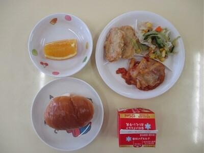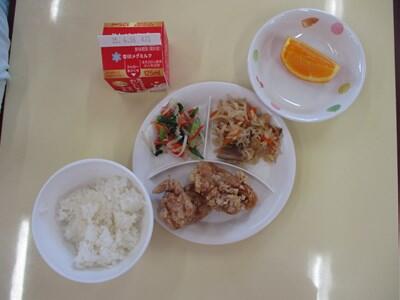 ・ごはん ・鶏肉のからあげ ・切り干し大根の煮物 ・もやしのナムル ・オレンジ ・牛乳