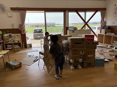 一つの素材にじっくり関わることで、段ボール毎に、固さの違いや大きさの違いに気づいてきているのだとか。