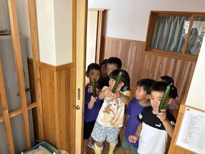 きりん組が収穫したキュウリを見せてくれましたので掲載しますね