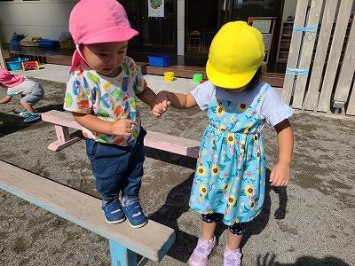 きりん組さんが、「こっちきな!」とか、「ここ持って!]とか。