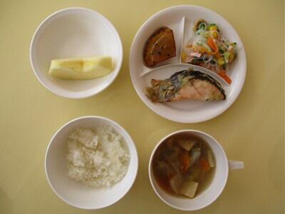 ・ごはん ・鮭のチーズ焼き ・切り干し大根の煮物 ・ミニトマト ・バナナ ・すいとん汁