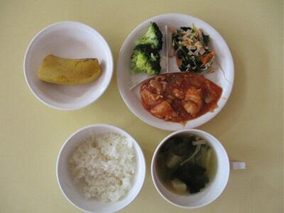 ・ごはん ・鶏肉のトマト煮 ・五色和え ・ブロッコリー ・バナナ ・みそ汁