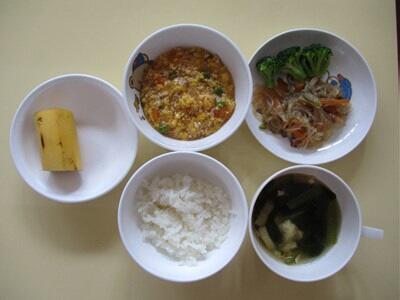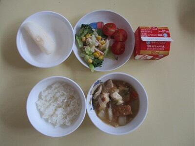 ・ごはん ・擬製豆腐 ・マリネサラダ ・ミニトマト ・バナナ ・みそ汁