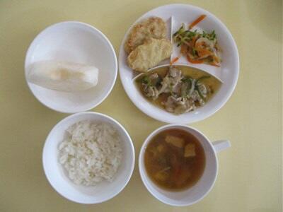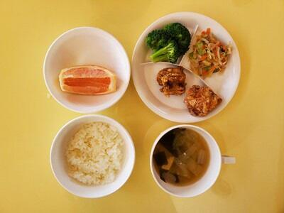 ・ごはん ・鶏肉のカレー揚げ ・おかか和え ・ブロッコリー ・グレープフルーツ ・味噌汁