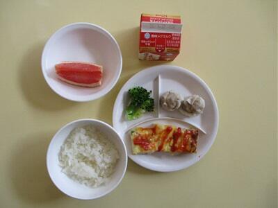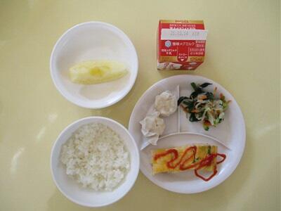・ごはん ・ジャーマンオムレツ ・焼売 ・ブロッコリー ・グレープフルーツ ・牛乳