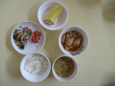 ・ごはん ・すき焼き風煮 ・春雨の酢の物 ・ミニトマト ・バナナ ・牛乳