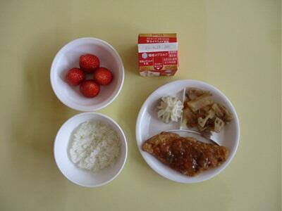 ・ごはん ・タラのオランダ揚げ ・包焼 ・根菜の金平 ・いちご ・牛乳