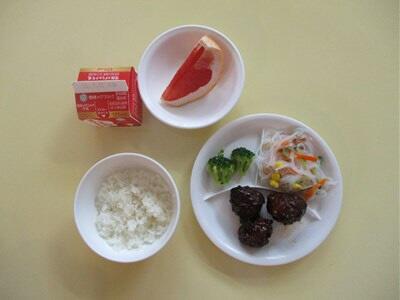 ・ごはん ・ミートボール ・春雨サラダ ・ブロッコリー ・グレープフルーツ ・牛乳