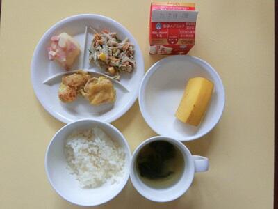 ・たまごサンド ・ナポリタン ・花野菜サラダ ・ナゲット ・グレープフルーツ ・牛乳