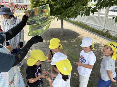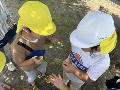 喜んで園庭に出て行き、友達や先生と一緒に、写真と実物を見比べていました。