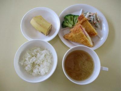 ・ごはん ・はんぺんチーズフライ ・ブロッコリー ・かみかみサラダ ・味噌汁 ・バナナ