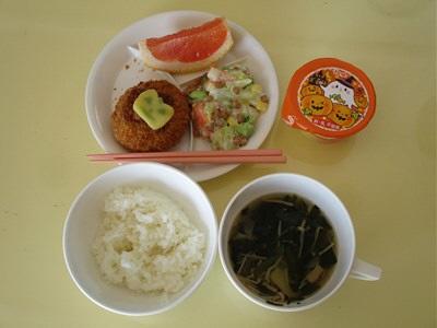 ・ごはん ・かぼちゃコロッケ ・納豆サラダ ・グレープフルーツ