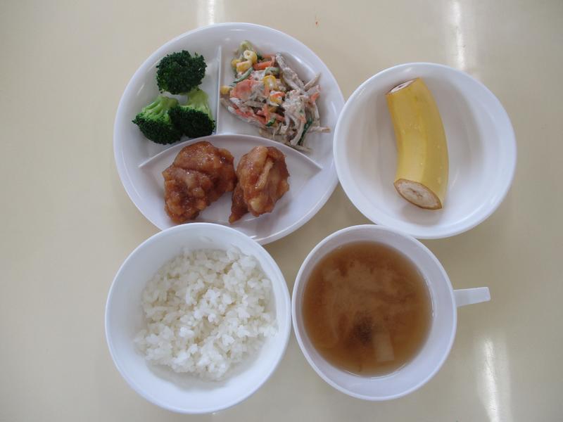 ・ごはん ・油淋鶏 ・ごぼうサラダ ・ブロッコリー ・バナナ ・みそ汁